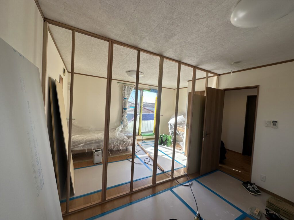 初めは広く空間を活用したいから間仕切りを設けていなかったけれど、壁が必要になる。ということがあります。