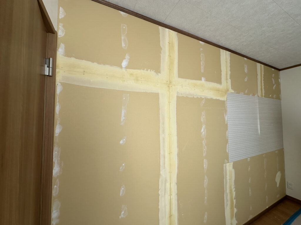 厚みは12.5と9.5がありますが、少しでも薄くしたかったので9.5mmを直張りをしていきました!