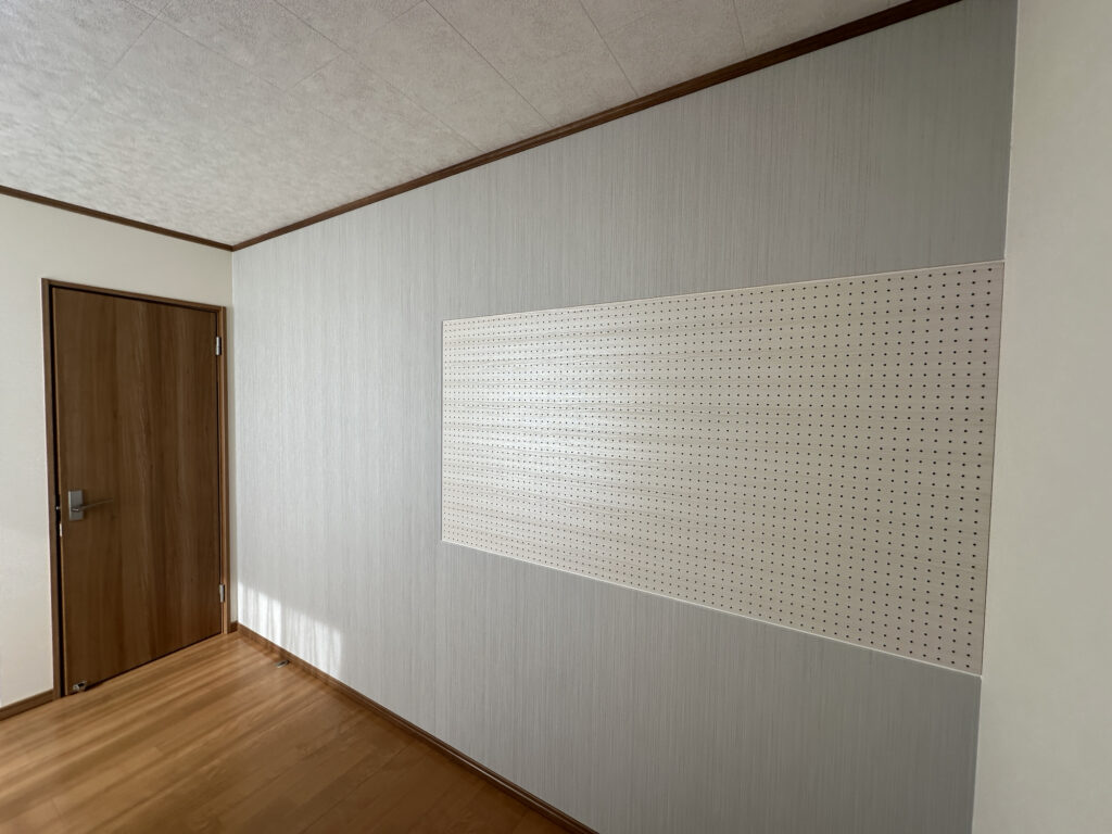 全面有孔ボードにすると声が筒抜けになってしまうし、お互い見えてしまうのでプライベート空間にならない。