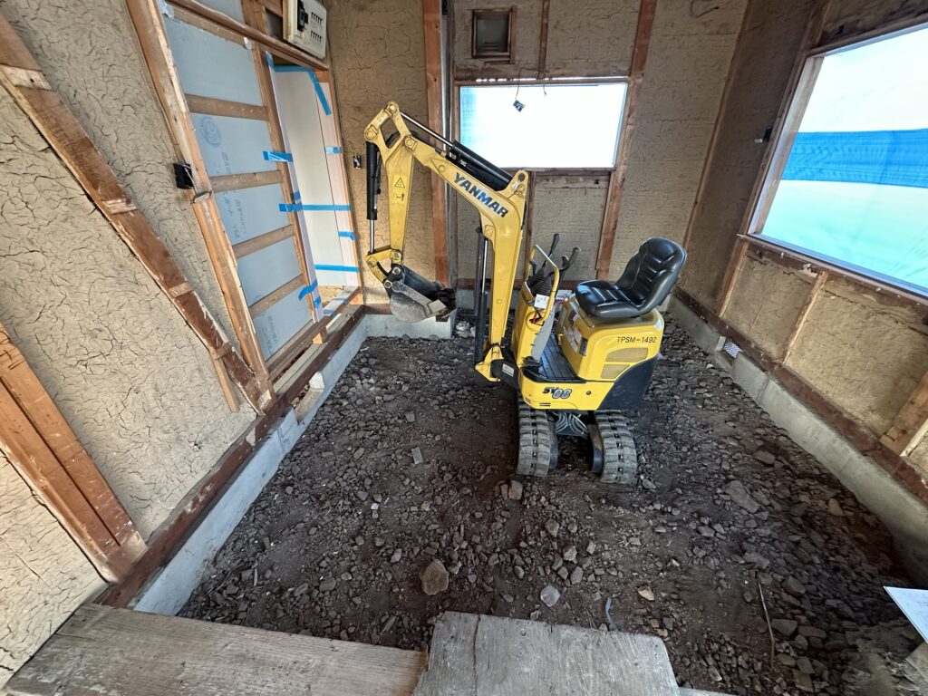 今、O様邸では解体工事が終わり、基礎の耐震補強工事として、補強位置の残土を搬出する作業を進めています。