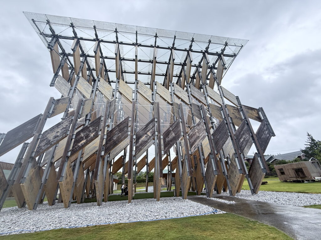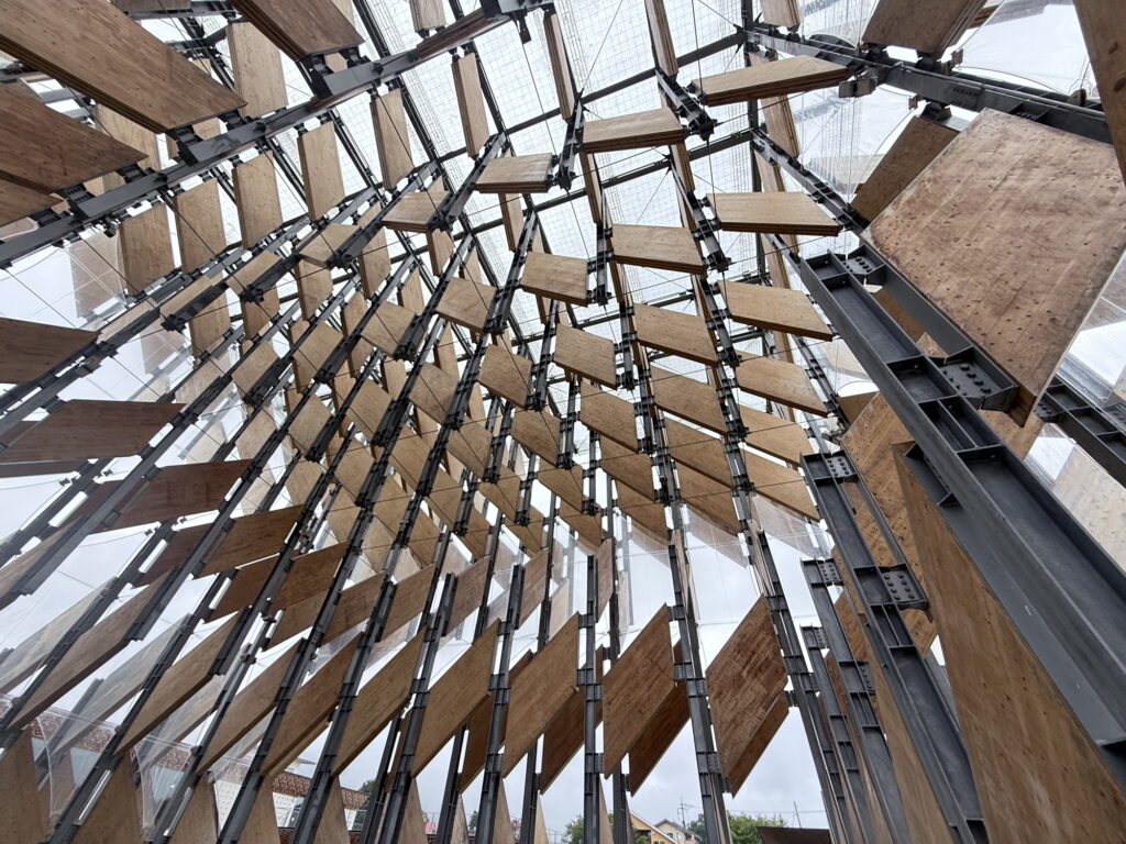 『風の葉』は元々、東京で直交集成材パピリオンの展示されていたものでしたが、2021年にこと地に来ました。
