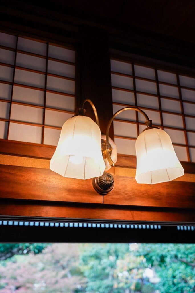 すずらんのようなかわいらしさに目がひかれます。欧米文化が入ってきたばかりの時代ならではのレトロモダンさが漂っていました。