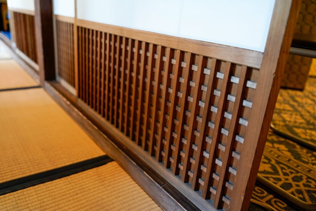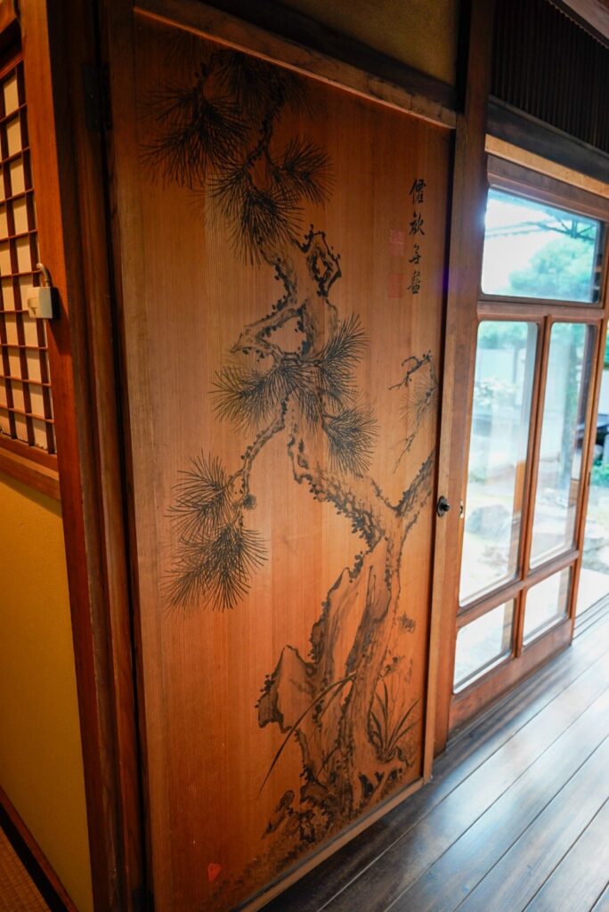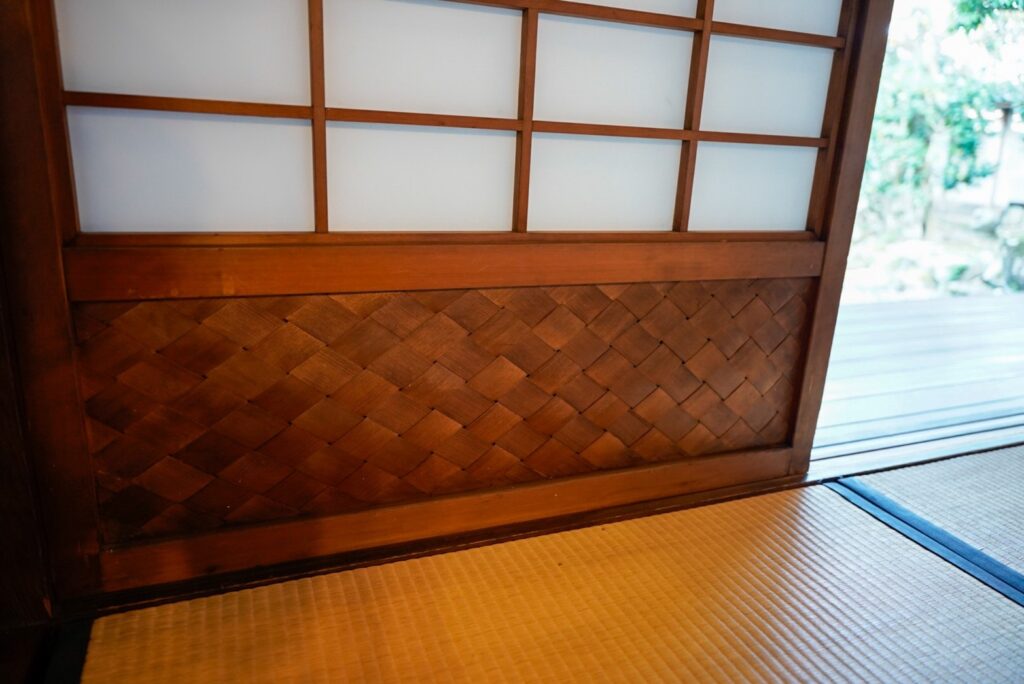 シャープな格子が印象的な襖や、一見網代かと思うような襖、筆で絵が描かれた板戸など、建具一つとってもどれも見ごたえ抜群!